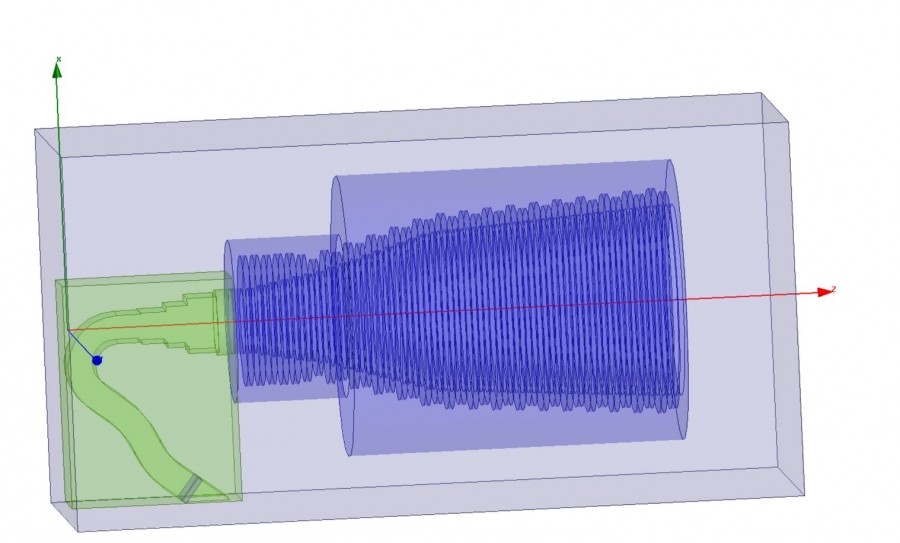 The Low frequency dual-depth horn with waveguide bend, undergoing HFSS analysis