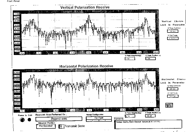 The RAM was measured with a HP8510 with respect to a large aluminum plate in a monostatic configuration. The standing wave for the reference metal plate measurements was averaged out by making a series of 11 measurements at 0.2mm intervals. The RAM was also measured at 11 positions separated by 0.2mm intervals.